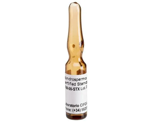 The Cylindrospermopsin Certified Standard undergoes rigorous analysis for identity and purity, including NMR and UPLC-MS/MS. Intended uses: Calibration of equipment or a measurement procedure; establishing metrological traceability; method validation; or quality control of a measurement or measurement procedure.