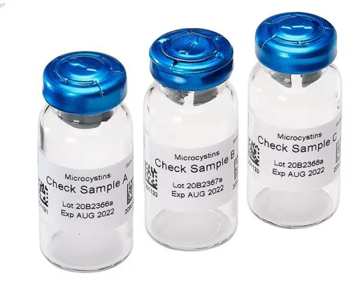 ELISA methods for Microcystin analysis are employed in many laboratories for the analysis of drinking and recreational waters and other matrices. The use of check samples with each run ensures that the analysis/dilutions have sufficient accuracy, precision, and specificity. The Microcystin-LR Check Sample Set contains 3 vials of lyophilized Microcystin-LR and a bottle of Diluent/Zero Standard (LRB).