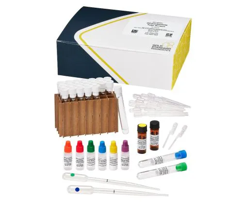 Assay for the detection of a wide range of organophosphate (including thiophosphate), and carbamate pesticides in water (drinking water, ground water, surface water and well water). This assay can also be used for testing these compounds collected as dislodgeable residues from a surface wash, as well as pesticide residues prepared as a dry extract (please contact Eurofins Abraxis technical support for information). The test is a qualitative, colorimetric assay (modification of the Ellman method) for the detection of organophosphates and carbamates, based on a modification of their inhibition of the enzyme Acetyl Cholinesterase (ACh-E). Ach-E hydrolyzes acetylthiocholine (ATC) which reacts with 5,5'-Dithio-bis(2-Nitrobenzoic Acid) [DTNB] to produce a yellow color which is read at 405 nm. If OP or Carbamate pesticides are present in a sample, they will inhibit ACh-E and therefore the color formation will be reduced or absent depending on their concentration. Detection limits of the various OP/C pesticides differ depending on their ability to inhibit the enzyme. If it has been established that only a single OP/C is present, the test can be used in conjunction with appropriate standards for quantitative testing.