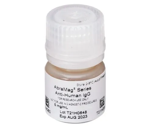 AbraMag Anti-Human IgG Magnetic Beads are densely coated with Goat anti-Human IgG. They are utilized in the magnetic separation and isolation of human antibodies from serum or human antibody-labeled components.