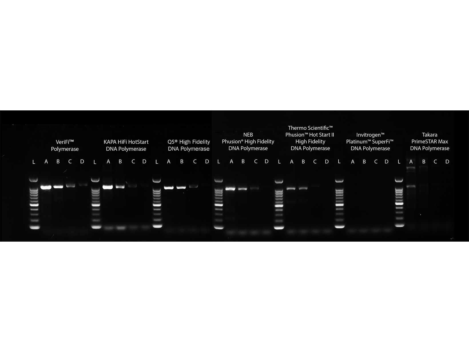 Độ chính xác cao và hoạt động exonuclease 3’-5’ được cải thiện của VeriFi® Polymerase dẫn đến độ chính xác khoảng 100 lần cao hơn so với polymerase DNA Taq. Enzyme này rất phù hợp cho các ứng dụng yêu cầu độ chính xác cao hơn, chẳng hạn như nhân mô hình, đột biến có định hướng và giải trình tự. Các sản phẩm PCR được tạo ra với dòng sản phẩm này có đầu phẳng. VeriFi® Polymerase cho phép PCR có độ chính xác cao với nhiều loại mục tiêu và kích thước đoạn mà không cần hoặc rất ít tối ưu hóa. Enzyme được cung cấp với một hệ thống đệm tiên tiến bao gồm cả dNTP và Mg. Đối với các mẫu khó khăn nhất, chẳng hạn như các trình tự giàu GC hoặc những trình tự có cấu trúc thứ cấp phức tạp, người dùng có thể thêm VeriMax Enhancer vào hỗn hợp phản ứng để cải thiện hiệu suất PCR. VeriFi® Polymerase cũng có sẵn dưới dạng hỗn hợp sẵn 2x tiện lợi chứa tất cả các thành phần phản ứng ngoại trừ các mồi và mẫu. Hỗn hợp đỏ 2x của chúng tôi chứa một phẩm màu đỏ phù hợp cho việc nạp trực tiếp và theo dõi trong quá trình điện di gel agarose.
