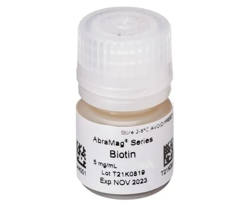 AbraMag Biotin Magnetic Beads được phủ dày đặc với Biotin. Chúng được sử dụng trong việc tách biệt và cách ly các protein và axit nucleic gắn avidin cho các nghiên cứu tương tác protein, DNA-protein pulldowns, và tinh sạch các protein và axit nucleic gắn avidin.