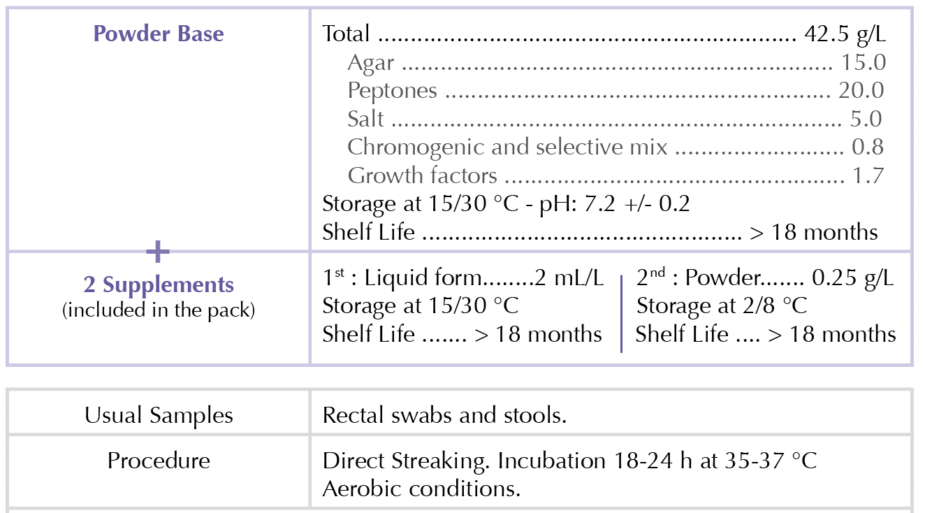 CHROMagar™ mSuperCARBA™ không nhằm chẩn đoán nhiễm CRE cũng như không hướng dẫn hay theo dõi điều trị cho các nhiễm trùng. Thiếu sự phát triển hoặc không có khuẩn lạc trên CHROMagar™ mSuperCARBA™ không loại trừ sự hiện diện của CRE. Cần phải thực hiện thêm định danh, kiểm tra độ nhạy và định kiểu dịch tễ trên các khuẩn lạc nghi ngờ.