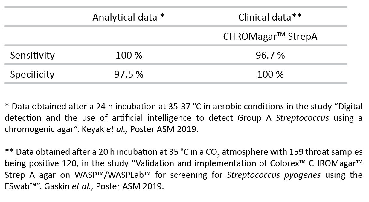 Automated Detection of Streptococcus progenies Pharyngitis by use of Colorex Strep A CHROMagar and WASPLab Artificial Intelligence Chromogenic Detection Module Software